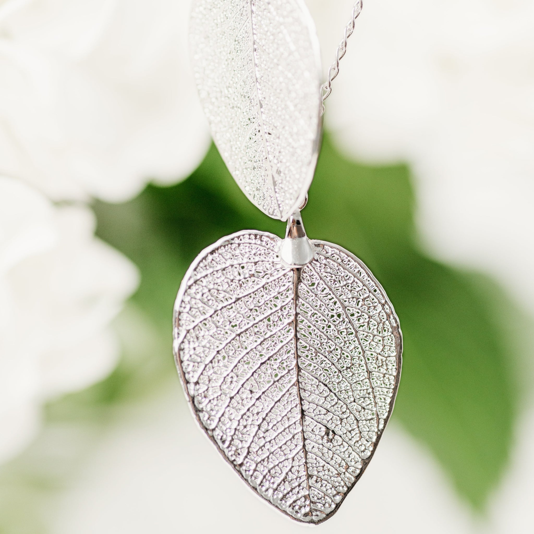 Leaf approx. 1 1/2" h x 1" w. Chain approx. 16" at longest